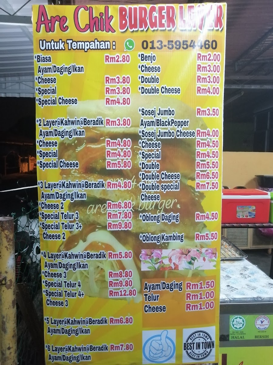ARE CHIK BURGER LAYER Menu